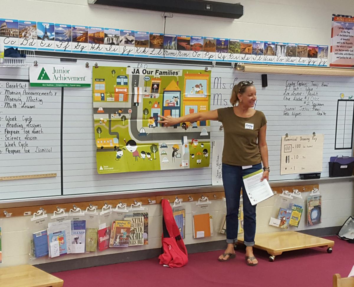 Our group of bankers turned into teachers as we took over the 2nd grade classrooms at John E. Ford elementary school. During the school day we provided the students with an appropriate-level financial education to build upon in the future. To learn more about Junior Achievement and their mission to help families through financial literacy click here.